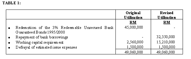 | Subject | : | (1) Proposed Bonus Issue; and (2) Proposed Rights Issue of Shares with Warrants. (Collectively, the "Proposals") |